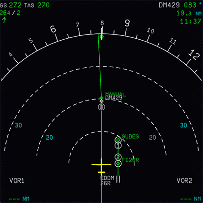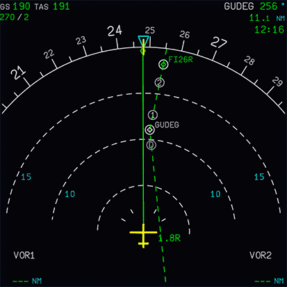 If no ATC is available (or when using MSFS ATC) the user must use heading mode (Selected HDG) or direct to (DIR TO) to guide the aircraft to an appropriate intercept course for the approach.
