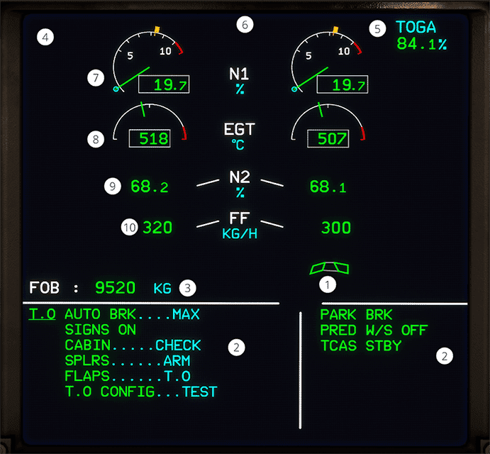5 Thrust rating mode and thrust limit value TOGA The selected thrust rating mode is Takeoff or go-around thrust.