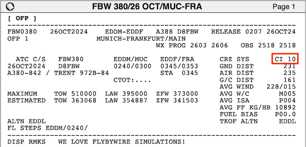 The Cost Index can be found in the OFP as highlighted in the image.