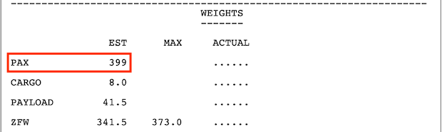 ZFW, ZFWCG and PAX