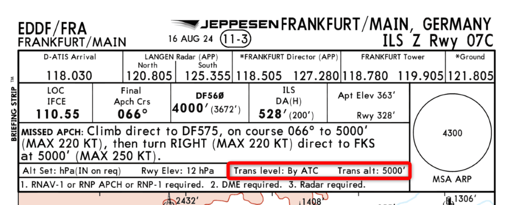 From the chart, we get Trans level and BARO (=DA or MDA) or RADIO (=RA or DH).